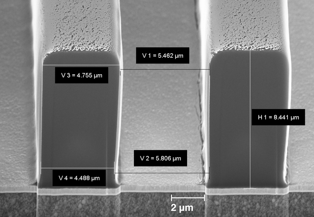 As a user, you have complete control of the system’s parameters, enabling you to achieve the exact desired geometry of the resist.